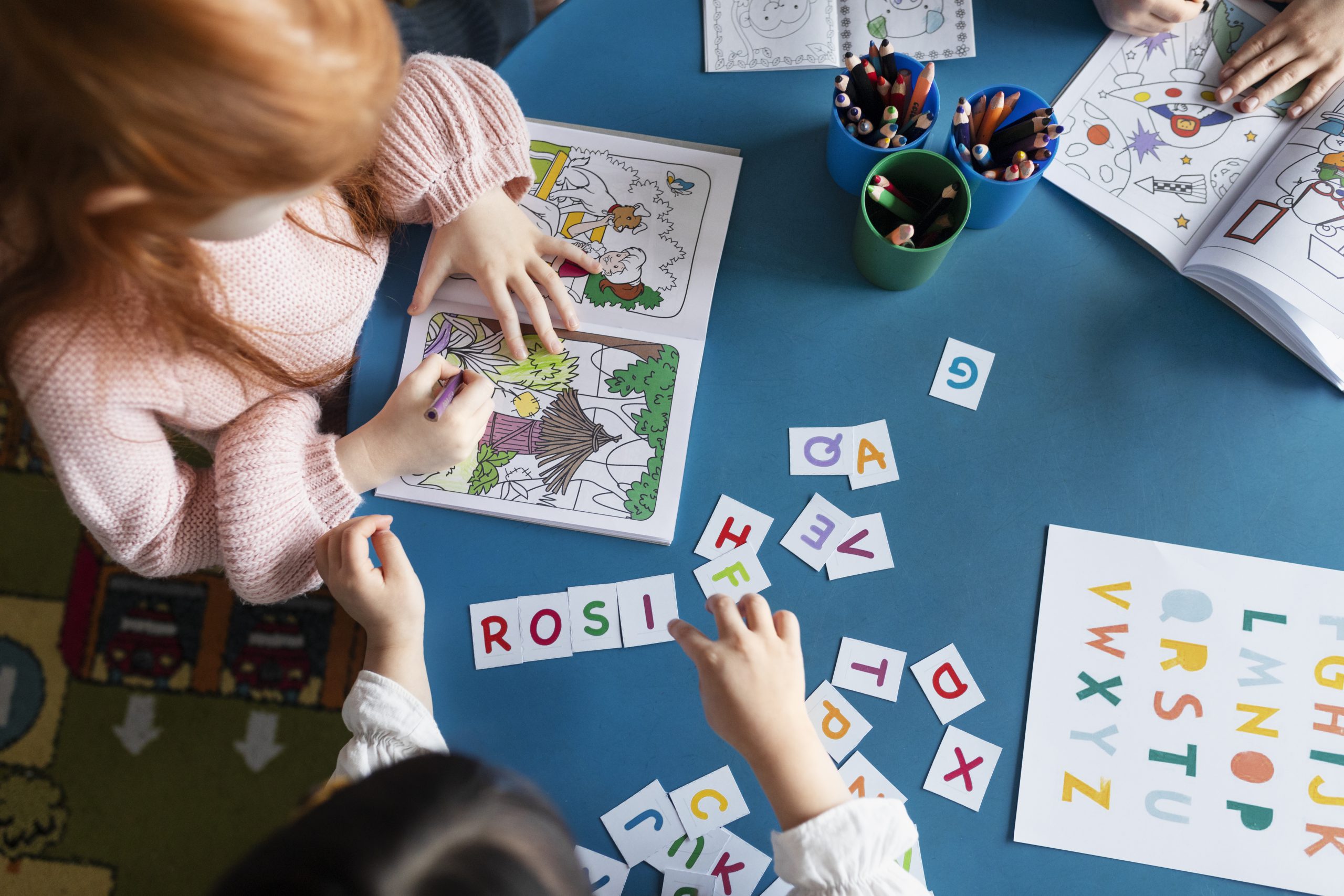 A cozy and inviting space that promotes early literacy through storytelling, picture books, and phonics sessions.